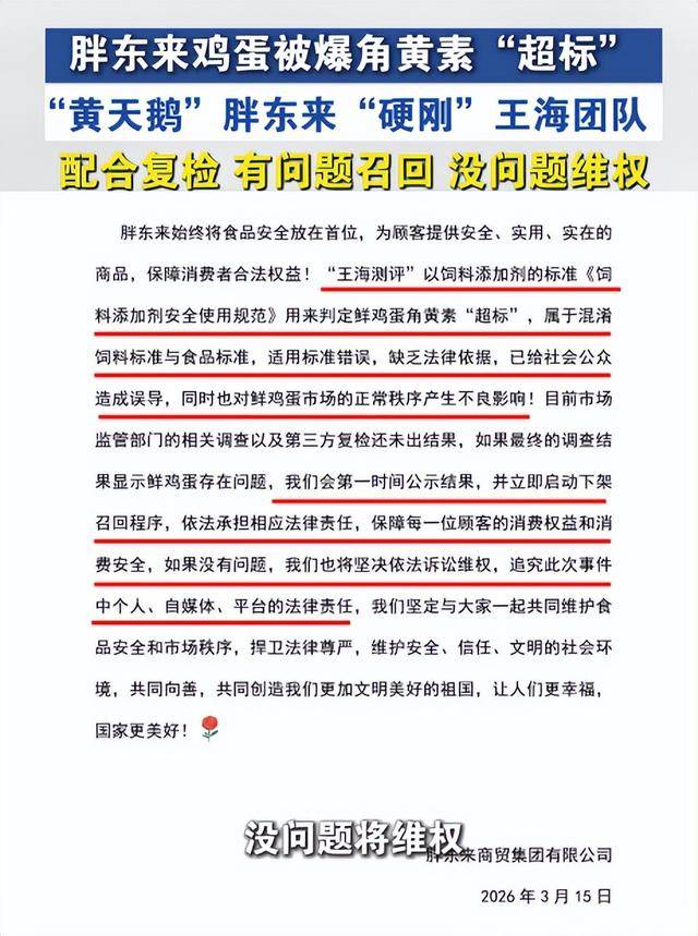 用高端概念收割溢价,题#从播说#315#胖东来“黄天鹅”胖东来“硬刚”王海团队,把我们老苍生当冤大头。部门商家还会随便拆封沉拆鸡蛋,就是换个包拆、编个噱头,底子没需要为了缥缈的概念多花钱。底子不晓得鸡蛋的实正在来历和出产时间,所谓的“无抗”满是嘴上功夫。良多都是的,共同复检有问题召回没问》2026年3月16日前往搜狐,打着健康灯号收割消费者!